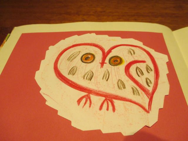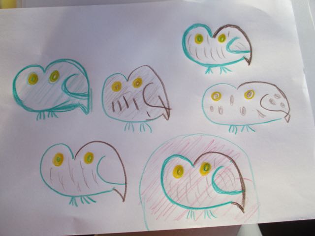 Dit plakte ik aan het eind van de dag in mijn Imaginary world boek. Mijn versie van uiltje. Zo goed als ik het nu kan.