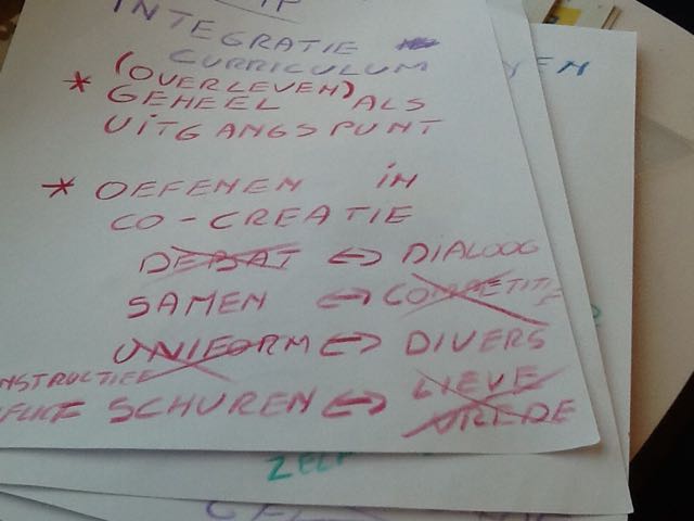 Daarna werd in een Worldcafé sessie in 2 groepen ook geantwoord op de vragen. De opbrengst op vellen verzameld en daarna plenair in de grote zaal weer gedeeld.