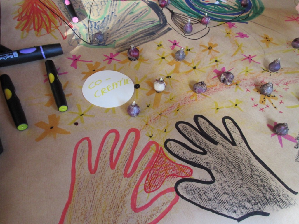 Het einddoel: op het eind van de dag gaan we in de tuin bloembolletjes planten. We gaan letterlijk die volgende stap planten.