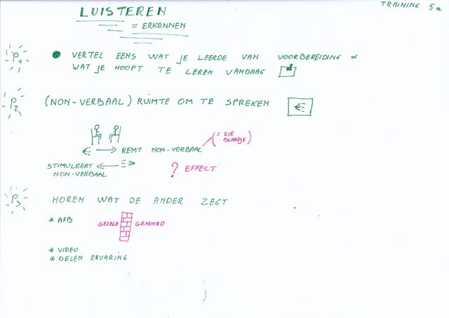 Nu gaan we terug naar communicatie. Het doel is om het inzicht in de eigen communicatie te verhogen. We willen ze graag ervaring laten opdoen met luisteren, LSD (=luisteren, samenvatten, doorvragen) en non-verbale communicatie.