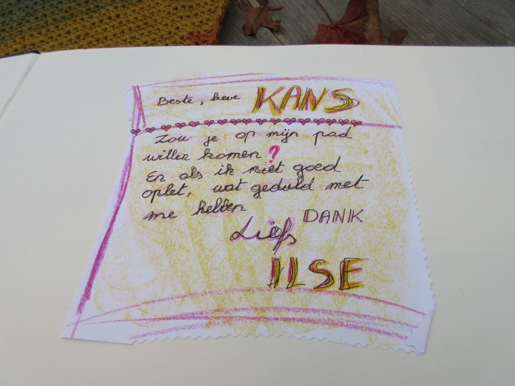 Ik plakte de leerbloem in die ik van iemand kreeg. Haar verbeelding met wat ze mij ziet doen rondom leren.