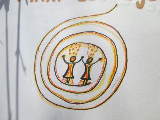 En ging aan de slag. Met de gesprekken van deze week in het achterhoofd koos en vereenvoudigde ik een aantal tekeningen die ik in mijn Imaginary World boek maakte. Voegde samen. Met dit als resultaat.